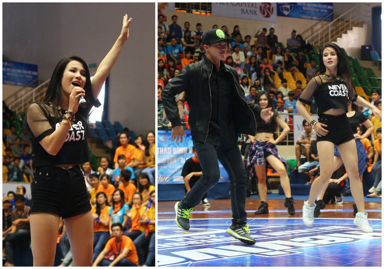| Diệp Lâm Anh khoe giọng hát và khuấy động sàn đấu bằng vũ đạo sôi động (cùng Lâm Vinh Hải). |