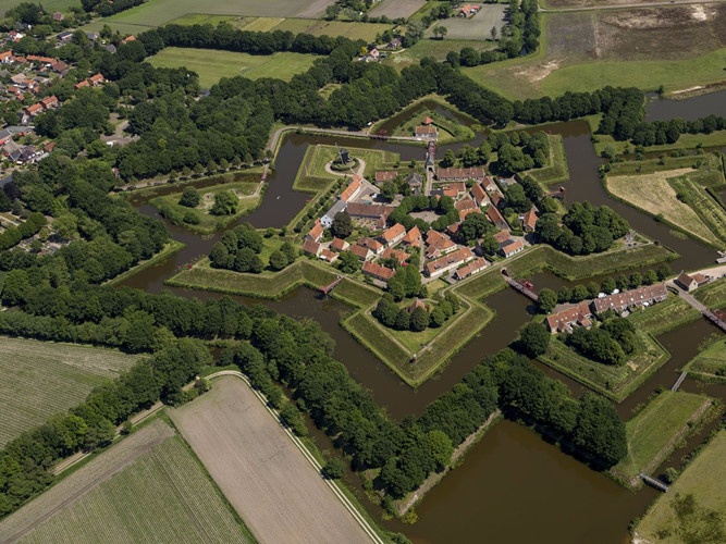 Làng Bourtange nằm trong khu đô thị Vlagtwedde ở Hà Lan, nổi tiếng với pháo đài hình ngôi sao ở trung tâm được xây dựng năm 1593 khi cuộc chiến tranh tám mươi năm (Eighty Years' War) diễn ra. Ngày nay, pháo đài là một khu trưng bày ngoài trời, bạn có thể ghé thăm trước khi khám phá các kênh rạch và kiến trúc thời Trung cổ của làng. |