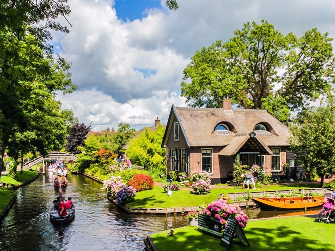 Với địa thế trên vùng sông nước, ngôi làng Giethoorn ở Hà Lan khiến bất cứ du khách nào cũng phải ngẩn ngơ khi ghé thăm bởi vẻ đẹp thanh bình, quyến rũ. Giethoorn còn được mệnh danh là "Venice của Hà Lan", với phương tiện di chuyển chủ yếu là thuyền và cano với động cơ điện không gây tiếng ồn. |