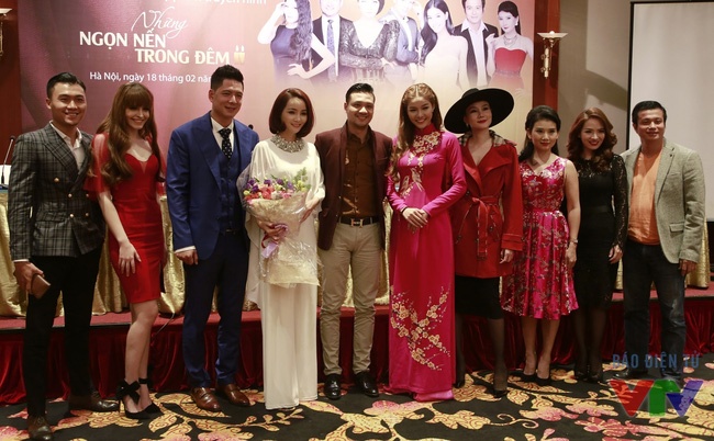 | Dàn sao Những ngọn nến trong đêm 2 tại buổi họp báo ngày 18/2 (từ trái sang): Xuân Phúc, Andrea Aybar, Bình Minh, Mai Thu Huyền, đạo diễn Khải Anh, Kỳ Hân, Dương Yến Ngọc, Mỹ Uyên, Đan Lê, Bá Anh. Ảnh: VTV |