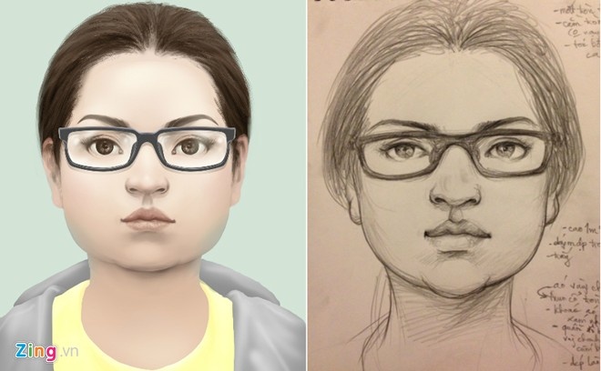 Chân dung cô gái bắt cóc bé Hoài được họa sĩ phác họa qua lời kể của các nhân chứng. |
