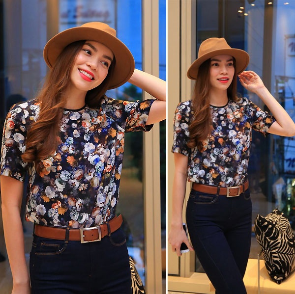 Thêm một lựa chọn của Hà Hồ với áo thun hoa đến từ thương hiệu Tây Ban Nha.