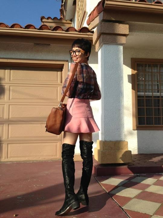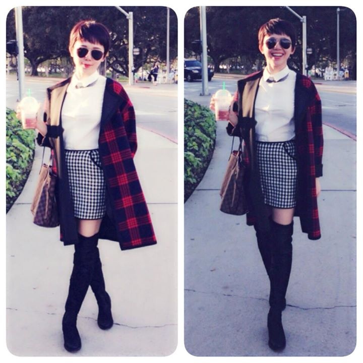 | Áo khoác kẻ carô Zara cũng nhanh chóng có mặt trong tủ đồ của Tóc Tiên. |