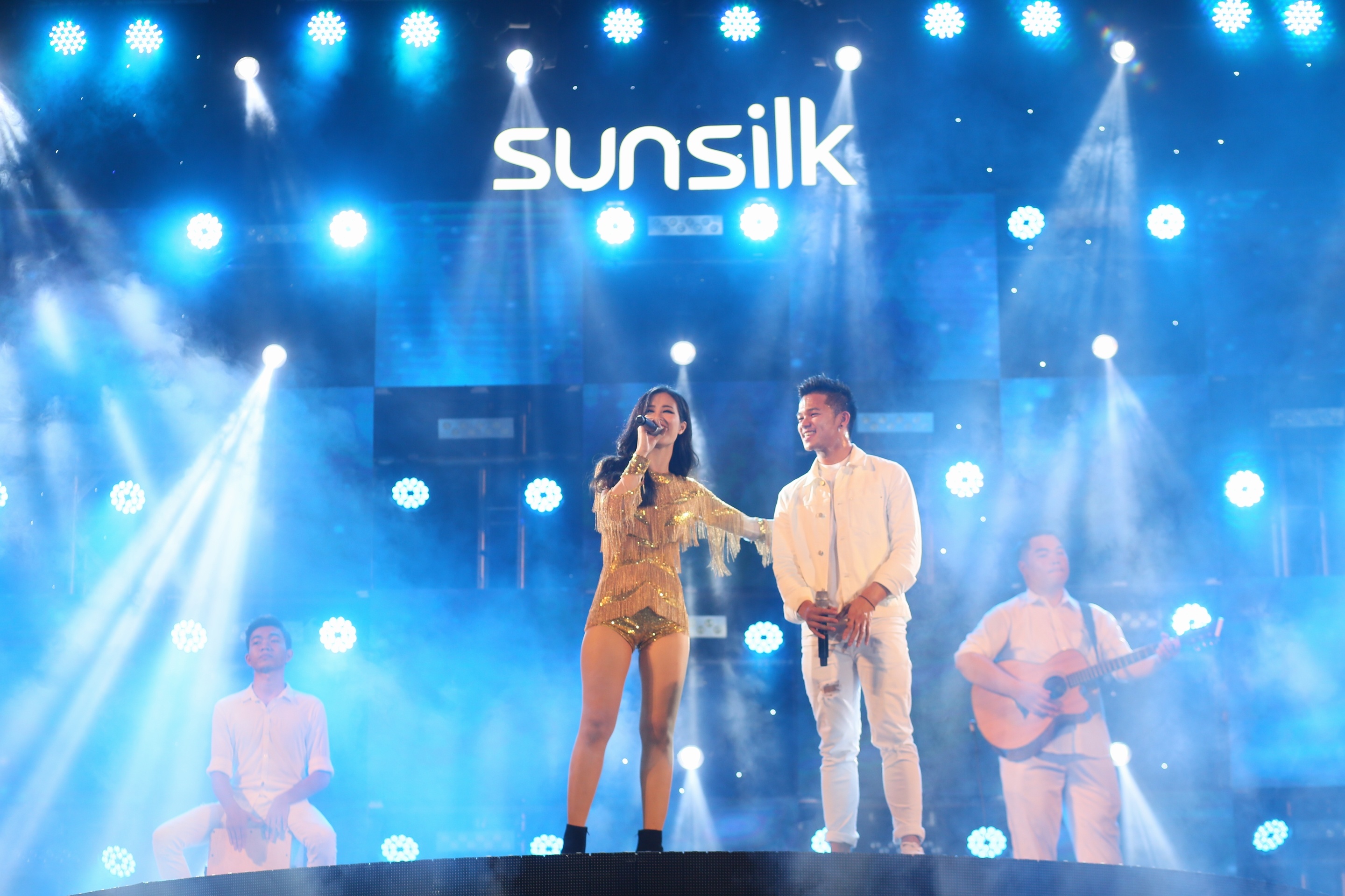 | Đinh Hương - Hoàng Tôn là cặp đôi xuất hiện liên tiếp trong liveshow của Đông Nhi. 10.000 khán giả trong 2 đêm diễn đã được thưởng thức hiệu ứng đặc biệt từ những màn trình diễn sôi động của 2 á quân The Voice. |