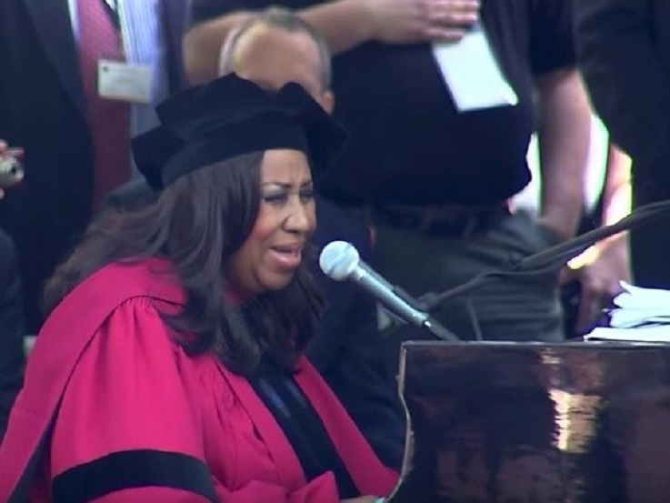 Năm 2014, Franklin nhận thêm bằng tiến sĩ danh dự từ Đại học Harvard. Nữ hoàng nhạc Soul đã thể hiện Quốc ca trong lễ trao bằng.
