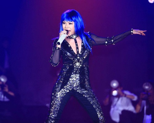 Nữ ca sĩ Nhật Kim Anh với chiếc váy thiếu tôn vinh vóc dáng.