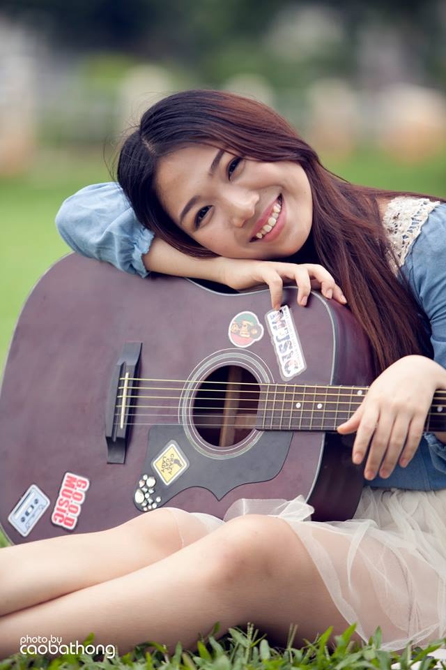 | Cô bé người lai Miccah với tài đàn hát guitar. |