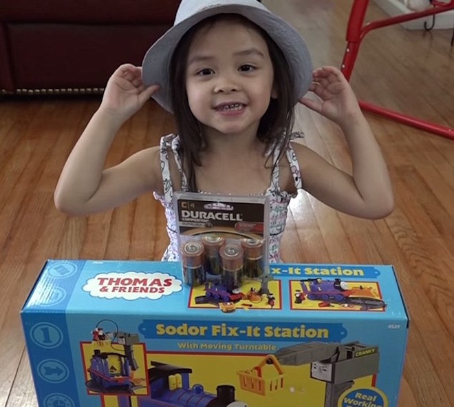 Theo Dailymail, Hulyan (5 tuổi), Maya (3 tuổi) và Marxlen (5 tháng tuổi) nổi tiếng nhờ thường xuyên đăng tải những hình ảnh khi đang vui đùa. Clip Maya bóc hộp đồ chơi Thomas & Friends Sodor Fix-It Station đạt mốc 400.000 lượt xem trong vòng chưa đầy một tháng. Tháng 3/2015, Hulyan Maya xếp hạng 42 trong những kênh YouTube được xem nhiều nhất tại Mỹ. Ảnh: Dailymail. |