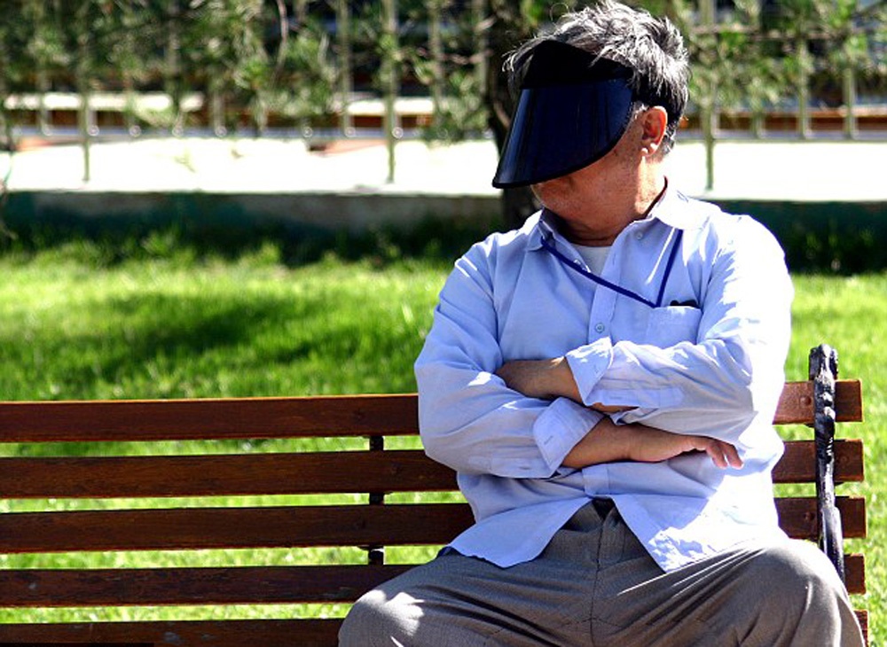 Người ta đeo loại thiết bị chống nắng ở khắp nơi, thậm chí cả trong cửa hàng. Ảnh Dailymail.