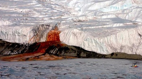 Victoria, vùng đất ngay dưới phía Nam của New Zealand, có một khung cảnh mang hơi hướng án mạng: vết máu khổng lồ in hằn trên bề mặt trắng xóa của của dòng sông băng Taylor dài hơn 56 m.![]() |