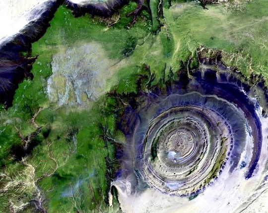 Đứng trên mặt đất thì rất khó thấy được “con mắt” này. Nhưng nhìn từ trên cao sẽ thấy rất rõ những vòng tròn đồng tâm lan tỏa với đường kính hơn 40 km trên sa mạc Sahara, gần thị trấn Ouadane ở miền Trung – Tây Mauritania.