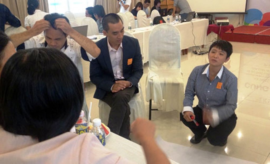 | Một bạn nữ chuyển giới nam (bìa phải) thảo luận nhóm tại một hội thảo ở TP.HCM. |