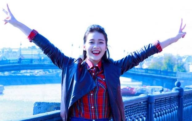 | Hot girl thể hiện niềm vui sướng bằng nụ cười tẹt ga khi đặt chân đến Nga trong chuyến lưu diễn năm ngoái. Ảnh: Đất Việt. |