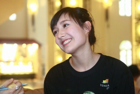 | Là một trong những hot girl giữ hình tượng khá tốt, thế nhưng không ít lần Tâm Tít quên rằng mình đang là tâm điểm của sự chú ý. Khóe miệng rộng hết cỡ khiến người khác cũng cảm thấy vui vẻ hơn. Ảnh: Thành Luân. |