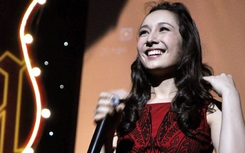 | Nụ cười không thể sảng khoái hơn của Midu trong buổi gặp gỡ fan tại TP.HCM cách đây không lâu. Ảnh: Đất Việt. |