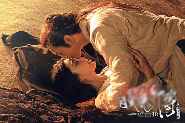 | Nụ hôn của Phạm Băng Băng và Huỳnh Hiểu Minh trong phim Truyền kỳ ma nữ tóc trắng dù chưa ra mắt nhưng đã kịp gây sốt màn ảnh. |