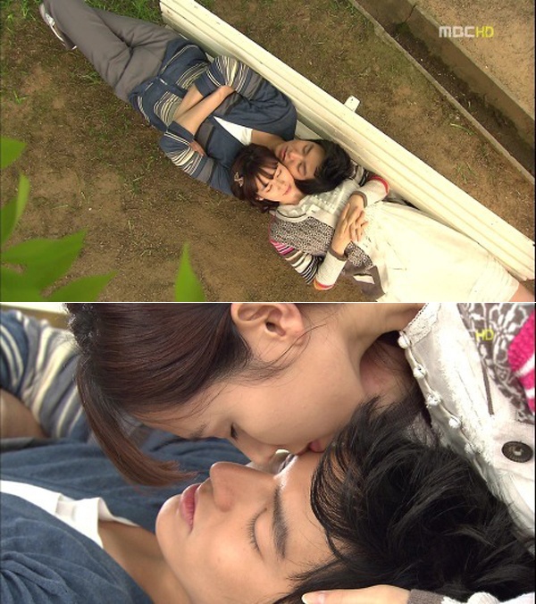 | Bộ phim hài lãng mạn Personal Taste của Lee Min Ho và đàn chị Son Ye Jin đầy rẫy những khung hình tình cảm. Trong vai một cặp đôi chuyển từ ghét sang yêu, một lần hẹn hò ở công viên và Lee Min Ho đang ngủ quên trên ghế, Son Ye Jin ghé tới đặt nụ hôn lên trán anh. |