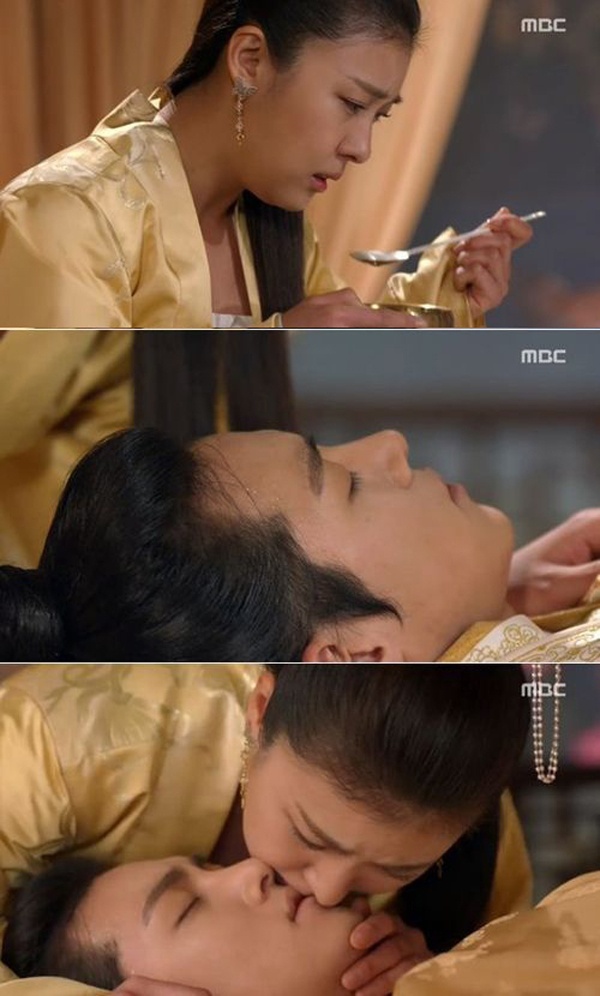| Bộ phim cổ trang Empress Qi đang phát sóng do Ha Ji Won đóng vai chính cũng có cảnh hôn đặc biệt này. Ở tập 33, khi Ta Hwan (Ji Chang Wook) bị đầu độc đứng giữa sự sống và cái chết Ki Seung Nyang (Ha Ji Won) đã cứu anh bằng cách truyền nước thuốc bằng miệng cho Ta Hwan. Empress Qi đang dẫn đầu rating các chương trình truyền hình tối thứ 2-3. |