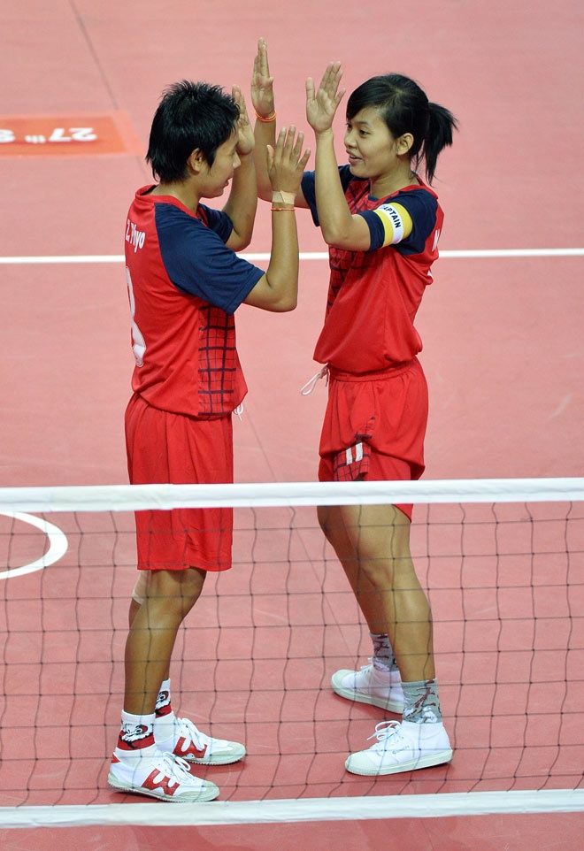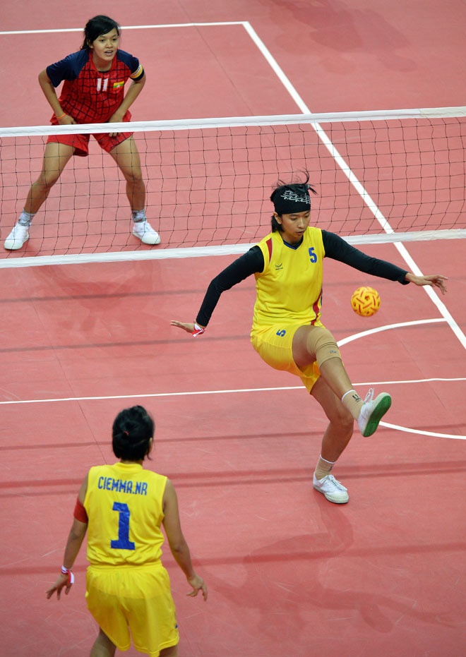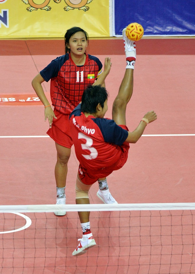 | Tuy nhiên, các cô gái Myanmar tỏ rõ lợi thế chủ nhà và liên tục ghi điểm. |