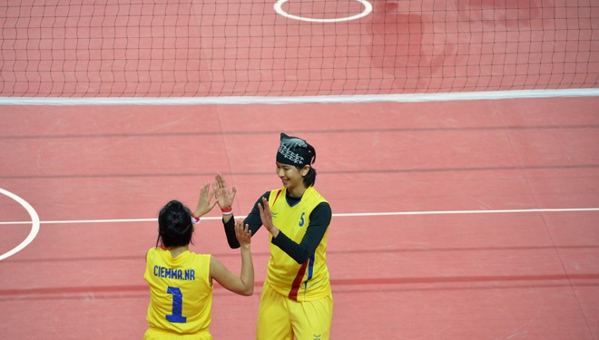 | Các cô gái chủ nhà tỏ ra vượt trội ngay từ những phút đầu đã dẫn Indonesia cách biệt nhiều điểm. |