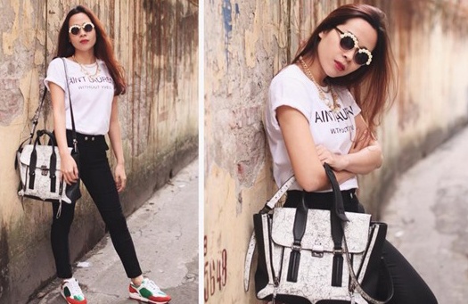 | Trúc Diễm với thời trang đường phố rất đáng yêu cùng giày vải. |