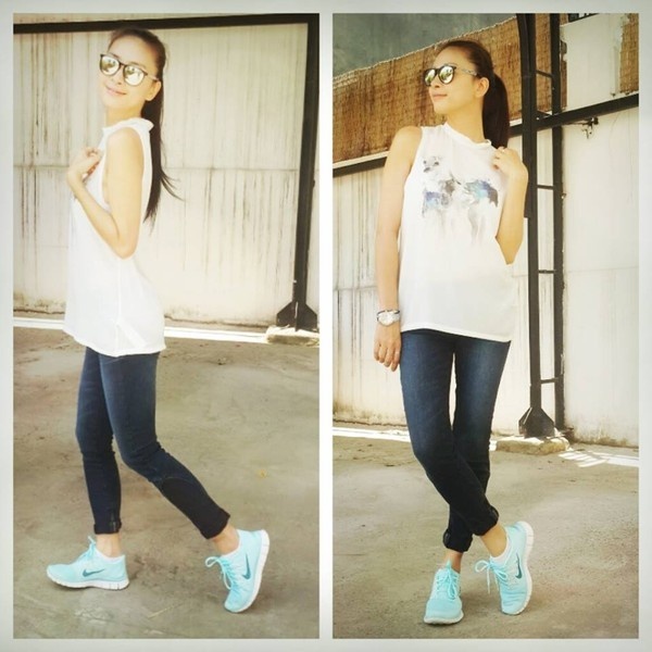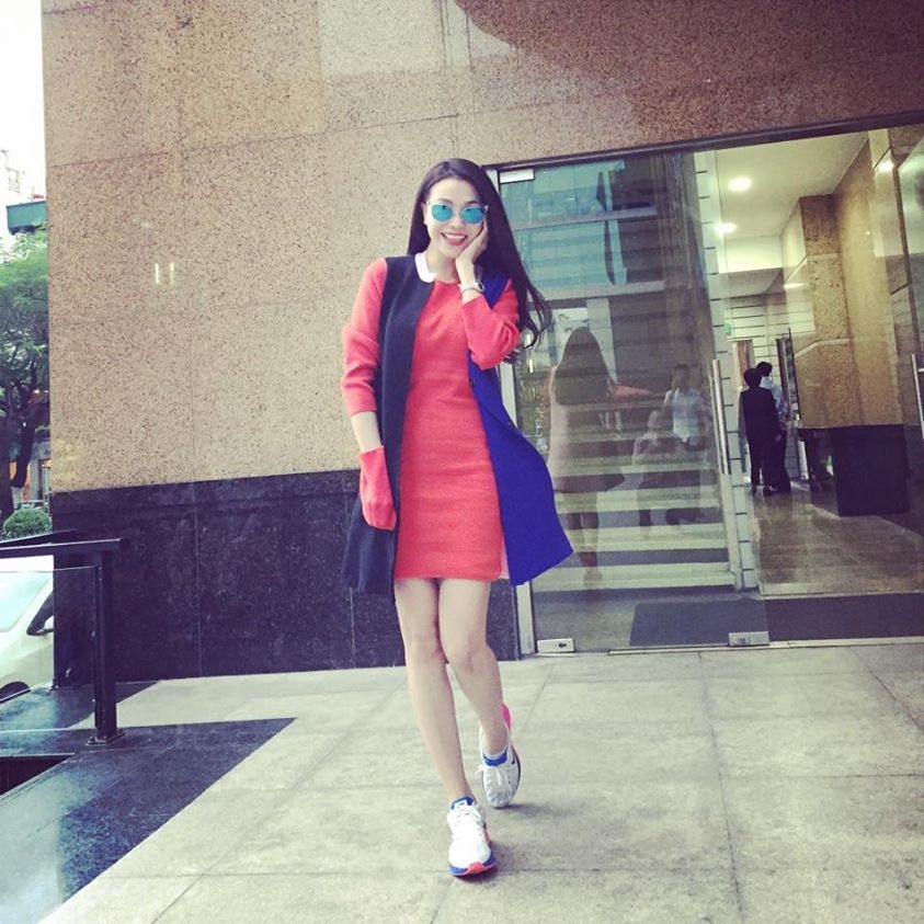 | Giày thể thao ngày càng được nhiều sao Việt lựa chọn vì độ trẻ trung và năng động của nó. Cách kết hợp cũng rất đơn giản bởi đây được coi là món phụ kiện bình dân. Đó là lý do rất nhiều sao Việt nhận được lời khen ngợi với đôi giày năng động này. Lưu Hương Giang ăn gian tuổi với quần jeans, áo thun và giày thể thao màu sắc. |