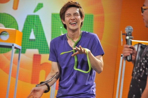 | Ông Cao Thắng phải mang rắn trên người. |