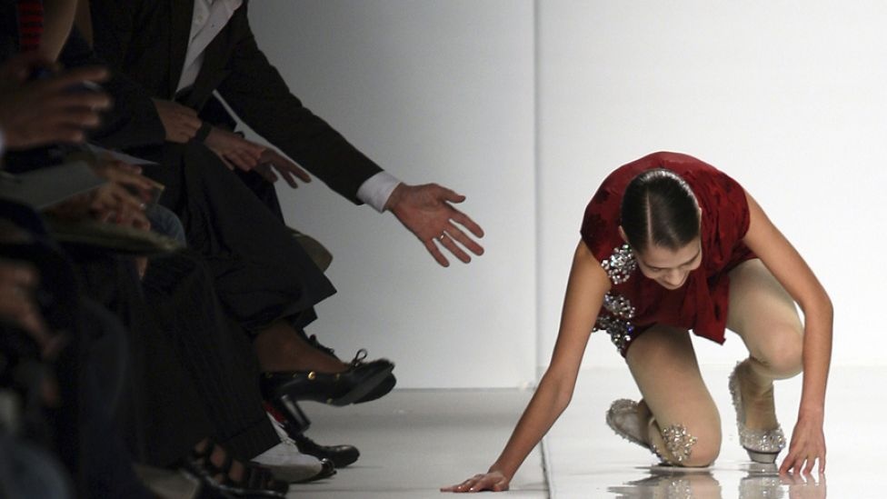 | ... hoặc chiếc váy quá dài là những nguyên nhân chính khiến các người mẫu gặp sự cố trên sàn diễn. |