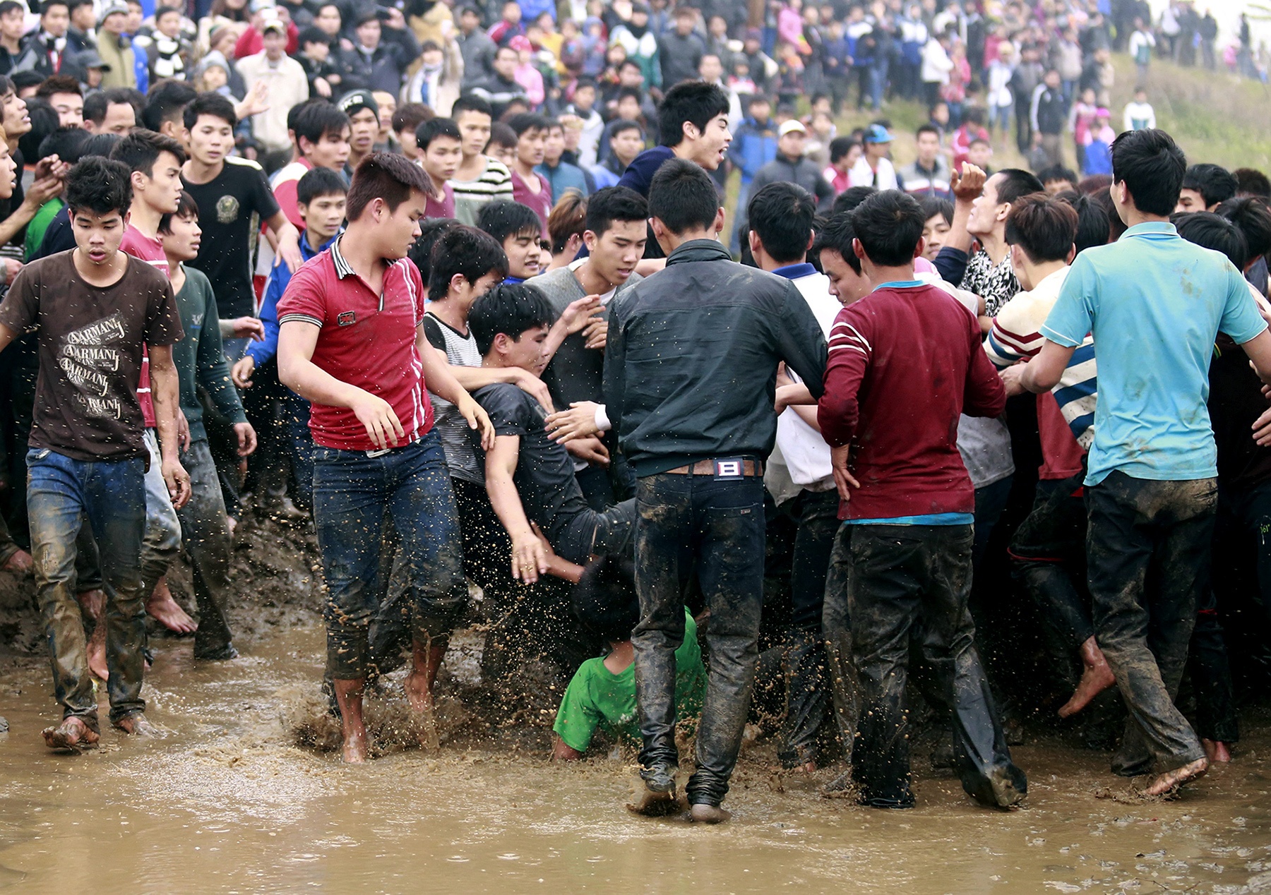 Thậm chí lăn xuống vũng bùn để bảo vệ quả phết và ngăn đội khác xông vào.