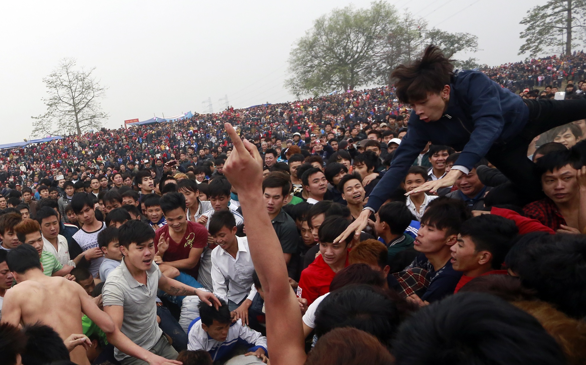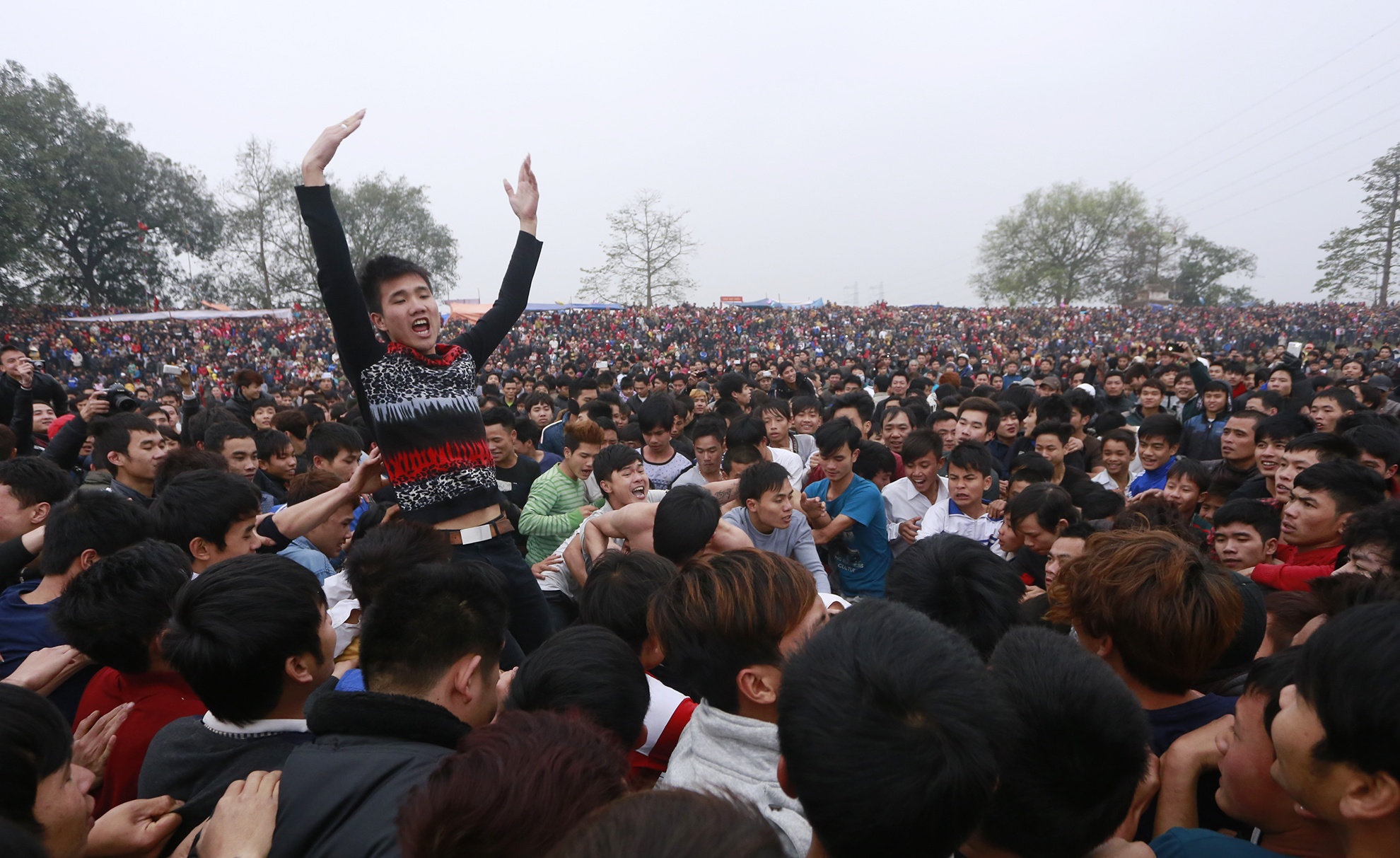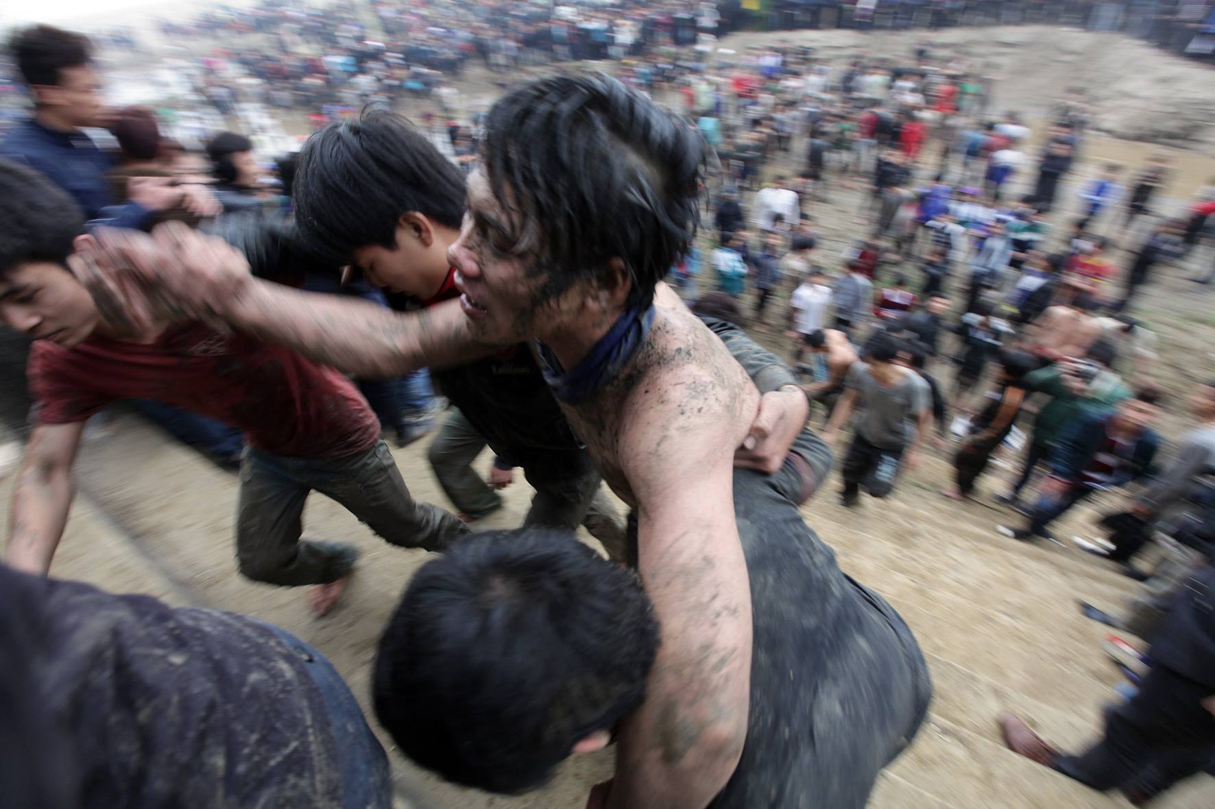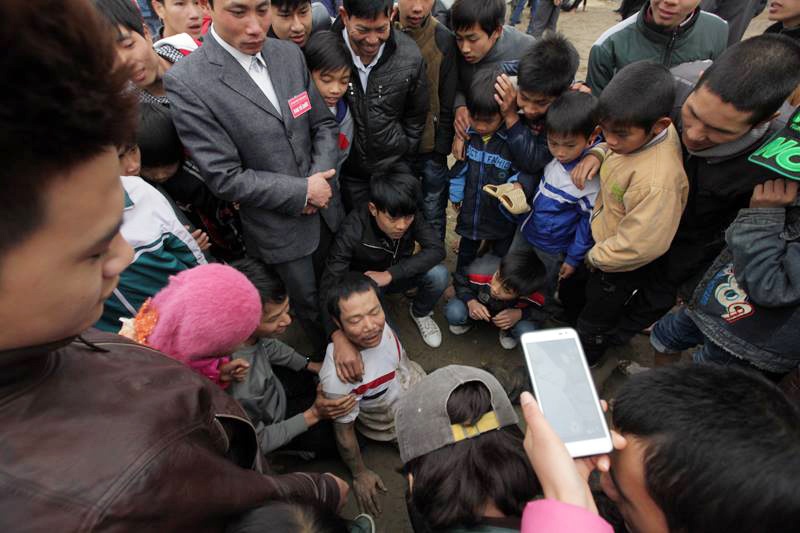 Để cướp được quả phết may mắn, hàng nghìn thanh niên sẵn sàng giẫm đạp, dọa nạt, thậm chí ẩu đả lẫn nhau. Đây là tiết mục chính tại một lễ hội làng ở Phú Thọ chiều 12/2.