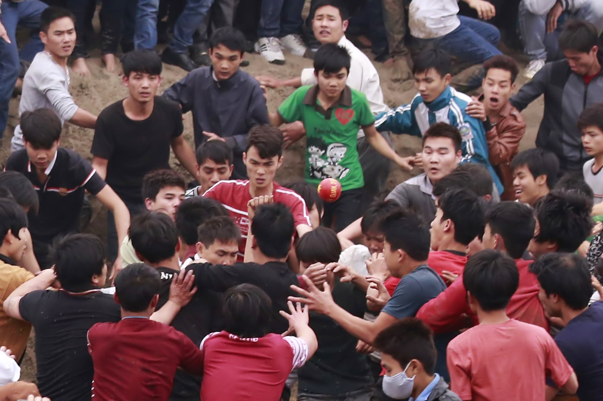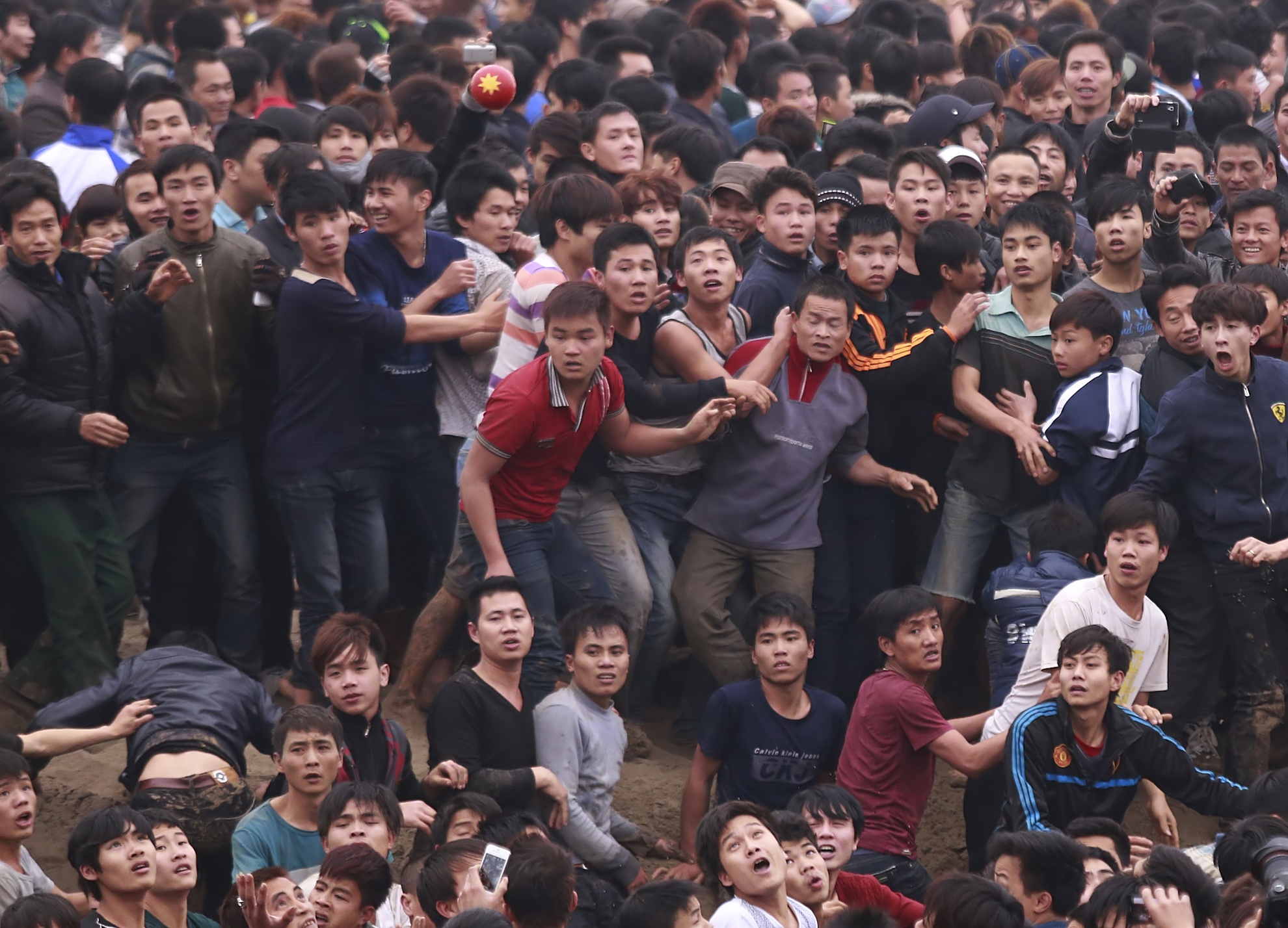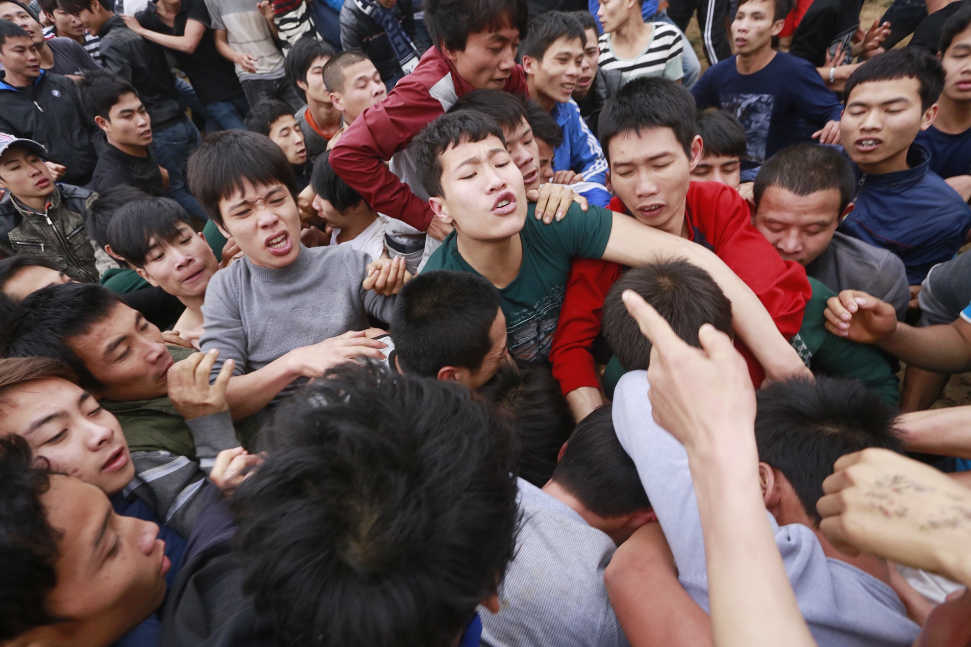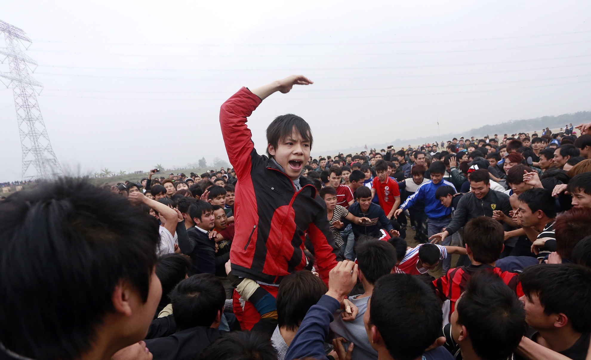 Để cướp được quả phết may mắn, hàng nghìn thanh niên sẵn sàng giẫm đạp, dọa nạt, thậm chí ẩu đả lẫn nhau. Đây là tiết mục chính tại một lễ hội làng ở Phú Thọ chiều 12/2.