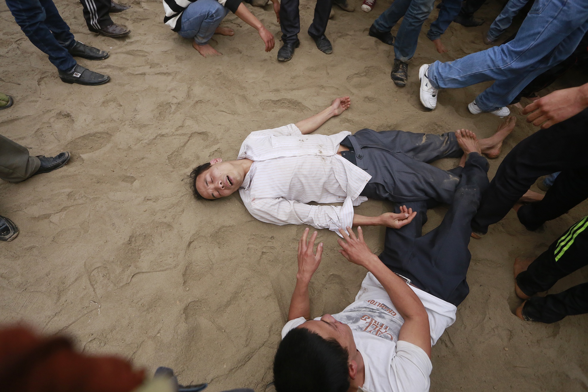 Nhiều người không chịu được va chạm và mất sức, chạy ra ngoài và nằm dài trên bãi cát.