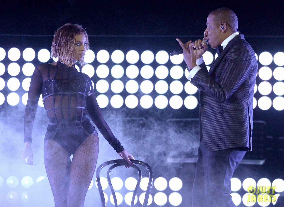 | Vợ chồng Beyonce và Jay Z mở màn sân khấu trình diễn của Grammy năm nay. |