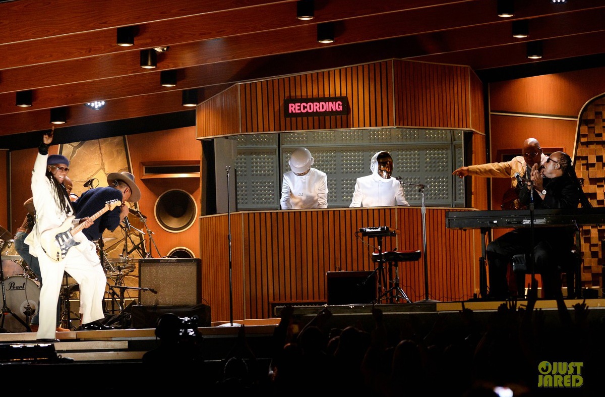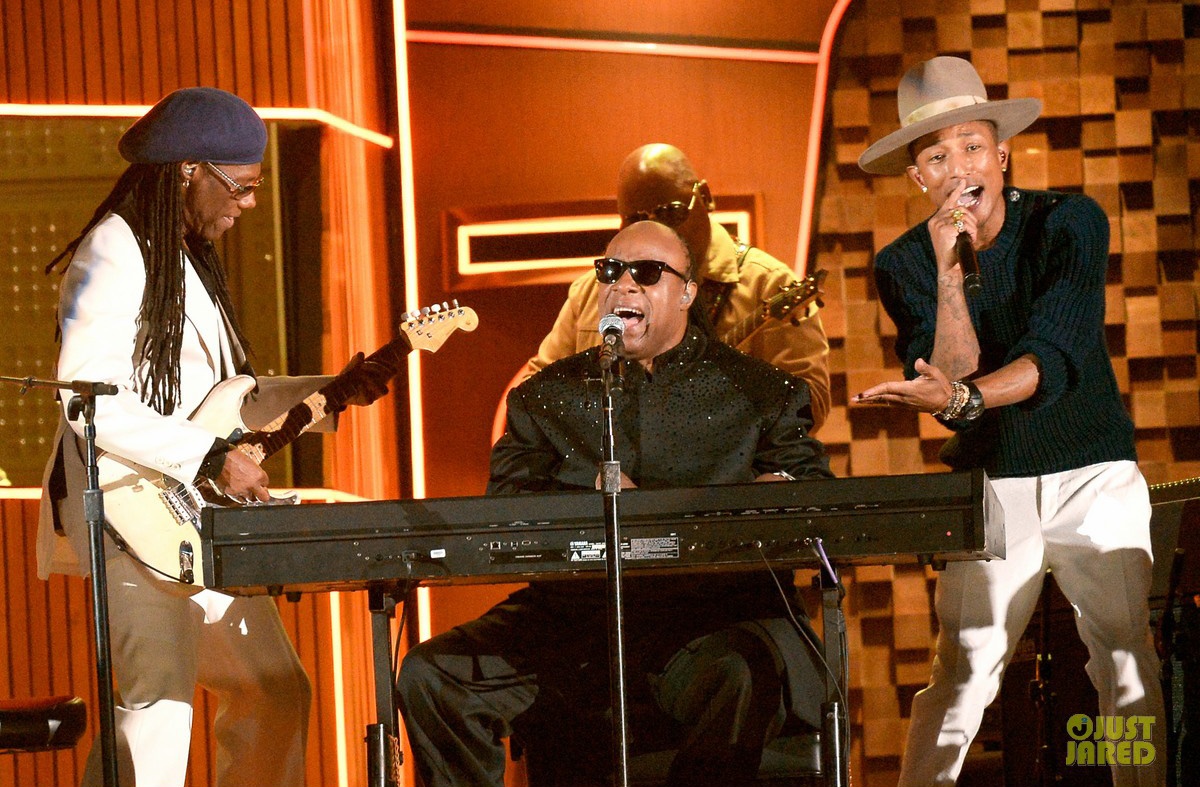 | Daft Punk và Pharrell Williams trình diễn Get Lucky cùng huyền thoại Stevie Wonder. |