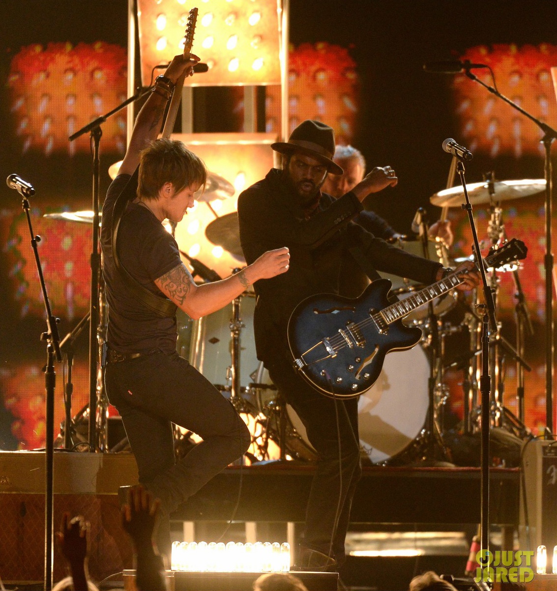 | Giám khảo American Idol Keith Urban mang đến một chút không khí đồng quê cho Grammy. |