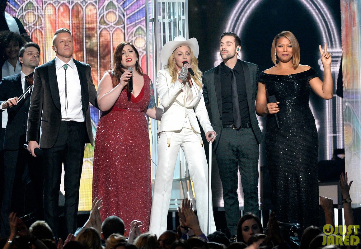 | Same Love - phần trình diễn có ý nghĩa đặc biệt của Grammy. Không chỉ là tiếng nói thể hiện sự ủng hộ hôn nhân đồng tính của các nghệ sĩ, đúng khoảnh khắc này, người xem Grammy trên toàn thế giới cũng được chứng kiến lễ cưới của 34 cặp đôi - trong đó có cả người đồng tính. |