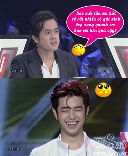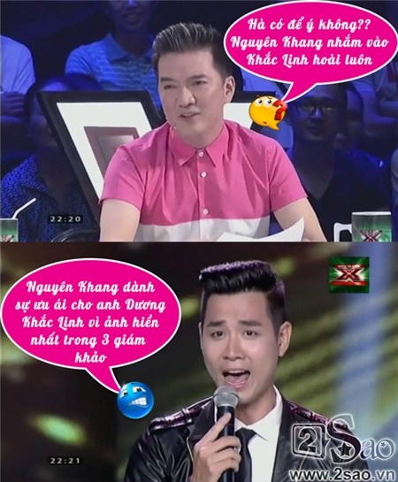 | Khi được hỏi về cảm giác ngồi trên xe và được bạn diễn Sĩ Thanh ôm, Loki Bảo Long đã chia sẻ rằng anh hơi bối rối. MC Nguyên Khang ngay lập tức nói rằng nếu thay thế Dương Khắc Linh vào vị trí của Loki chắc chắn sẽ hợp hơn vì Dương Khắc Linh đã quen với vị trí ngồi trước xe và có người ôm ở phía sau. Ngay sau đó, Đàm Vĩnh Hưng đã châm chọc MC Nguyên Khang luôn nhắm vào Dương Khắc Linh. MC Nguyên Khang hài hước giải thích: “Nguyên Khang dành sự ưu ái cho Dương Khắc Linh vì anh hiền nhất trong ba giám khảo”. |