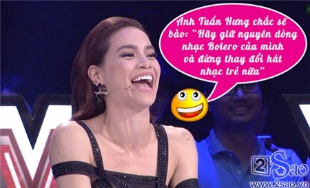 | Hồ Ngọc Hà còn nhận xét thêm về phần trình diễn của Quang Đại: “Hà đánh giá cao sự can đảm khi chuyển từ dòng nhạc quê hương sang nhạc trẻ của Quang Đại. Và từ đầu bài đến giờ, Hà vẫn thấy Đại hoang mang rất nhiều, mặc dù Đại đã mang đến cho Hà một sự choáng váng kinh khủng khiếp khi nghe bạn hát bài hát vừa rồi. Đại hãy cố gắng giữ vững phong độ của mình như những vòng thi trước”. |