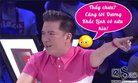 | Một lần nữa, Đàm Vĩnh Hưng lại tiếp tục trêu chọc MC Nguyên Khang luôn nhắm vào giám khảo Dương Khắc Linh khi Nguyên Khang nhắc khéo anh và Dương Khắc Linh không nhún nhảy trong tiết mục trình diễn của nhóm FB Boiz. |