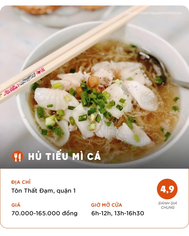 Hủ tiếu Tôn Thất Đạm thu hút thực khách với những lát cá siêu mỏng, nước dùng có màu hơi đục, vị ngọt thanh. Thành phần đi kèm là hành lá xắt nhuyễn, giá trụng, không thêm rau sống hay các loại gia vị khác. Gắn bó với nhiều thế hệ người Sài thành, quán vẫn giữ cách ăn hủ tiếu kèm bánh pate chaud.