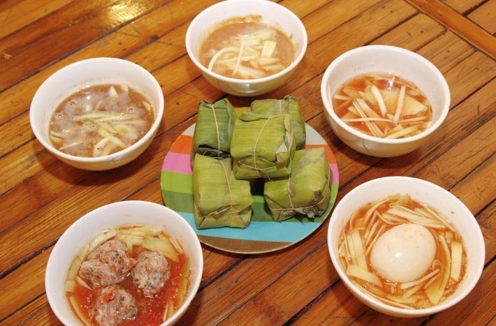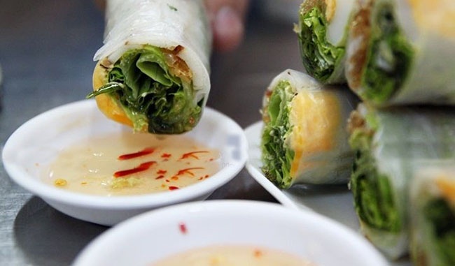 Bên cạnh điểm cộng về hương vị của món bánh, quán cũng hút khách với 5 loại nước chấm khác nhau gồm nước mắm xoài, mắm cái (mắm nêm), mắm đậu phộng, cá kho, xíu mại, trứng luộc. Mỗi chiếc bánh kết hợp với nước chấm khác nhau sẽ mang đến cho thực khách những trải nghiệm khác nhau.