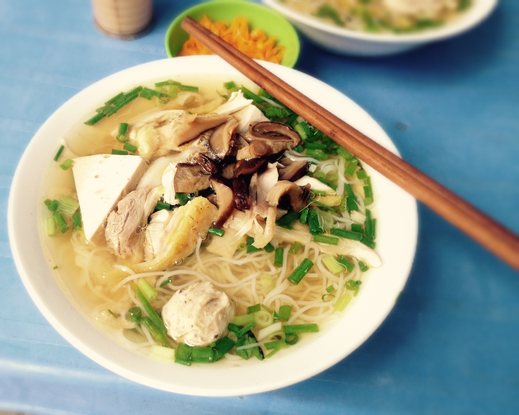 | 9. Bún gà phố Bảo Khánh: Tiệm này hàng chục năm nay là địa chỉ ăn sáng quen thuộc của các dân chơi sành điệu. Ở đây tác phong phục vụ nhanh nhẹn, chuyên nghiệp, chỗ ngồi sạch sẽ, thoáng đãng, và đặc biệt món bún gà rất được lòng khách. Không chỉ có nước canh nấu đậm đà, vừa miệng mà thịt gà quán chọn đều là "hàng tuyển" - chắc giòn, tươi ngon, khách khó tính cũng phải ưng miệng. Bún Bảo Khánh còn có thêm miếng mọc, giò, nấm khiến món ăn thêm phong phú. |