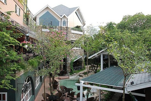 2. Hương Đồng Nội Cafe (Âu Cơ, Phường 10, quận Tân Bình) được thiết kế kiểu biệt thự nhà phố kèm thác nước và hoa. Quán khá rộng. Bạn sẽ phải đến đây nhiều lần nếu muốn khám phá mọi khu vực của quán.