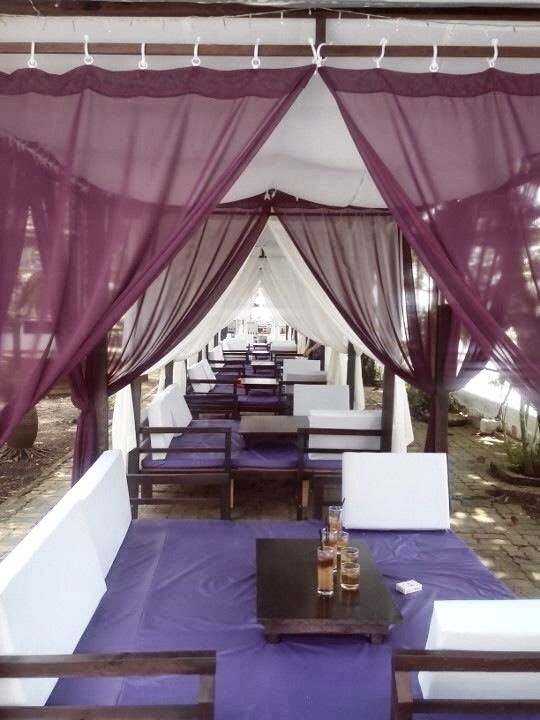 | Ấn tượng nhất tại quán là những chiếc lộng được trang trí sang trọng, nhìn thẳng ra sông. Tùy kích thước, số lượng người, bạn có thể chọn cho mình những chiếc lộng tương đương để thoải mái nằm hay ngồi trò chuyện cùng mọi người.