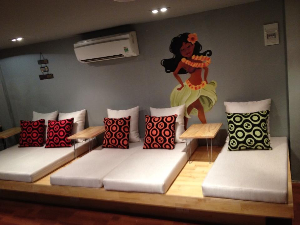 |  Hawaii Kìa (Sư Vạn Hạnh, phường 12, quận 10) mang tới cảm giác thư giãn đúng chất "thiên đường nhiệt đới" với những chiếc ghế nệm dài, những bức tranh  phác thảo vui nhộn trên tường... |