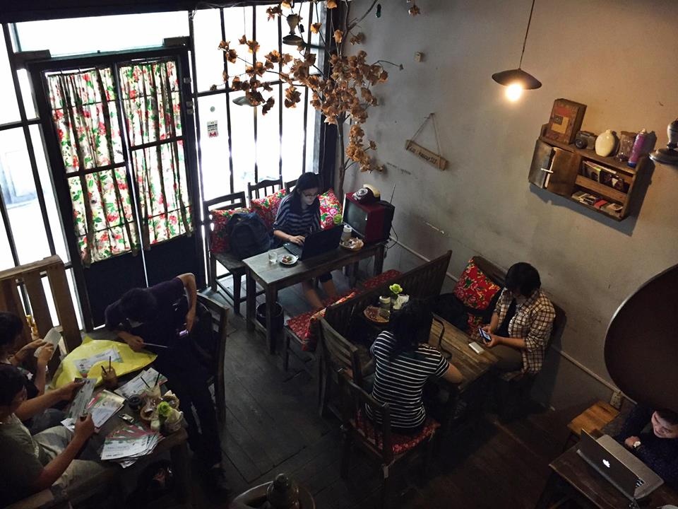 Điều đặc biệt của quán là một ban công rộng, với không gian được phủ kín cây xanh, thoáng đãng. Nội thất và bài trí của quán là sự chắt lọc và sưu tầm từ những vật dụng cổ và cũ, mang đến sự hài hoà và ấn tượng. |