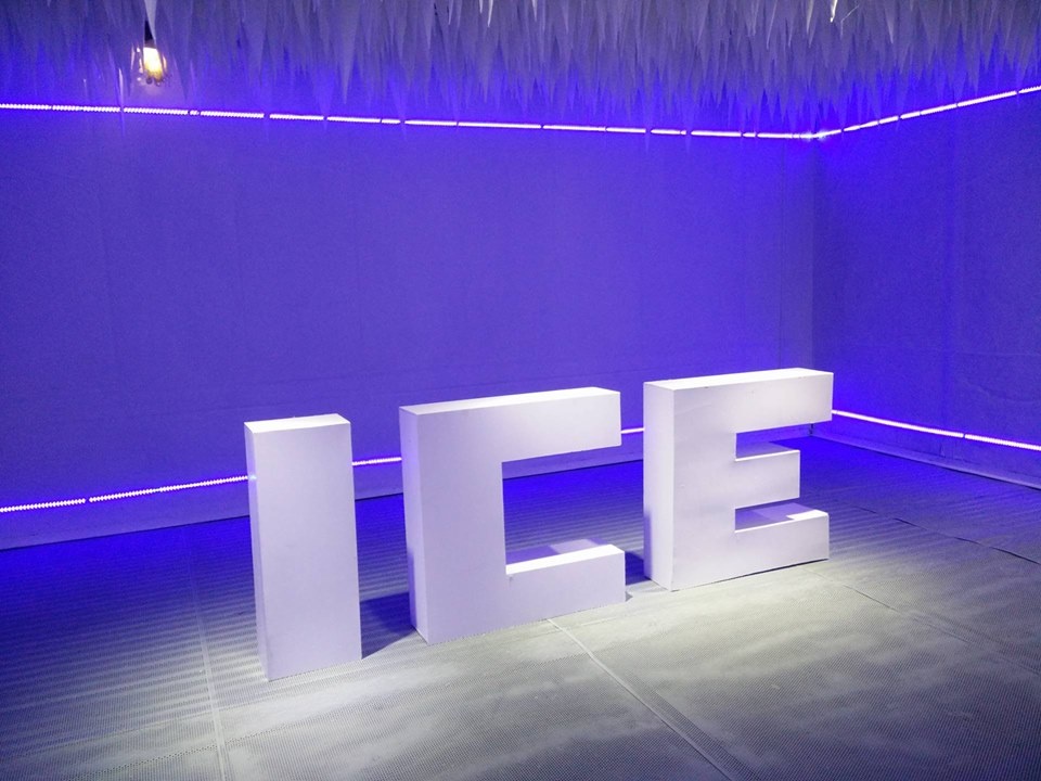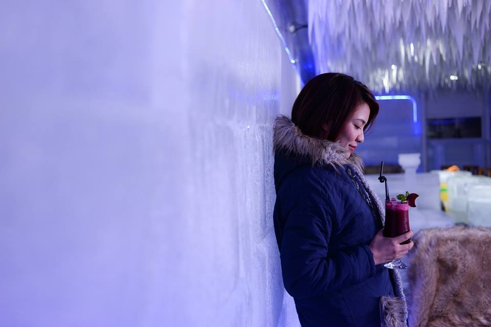 Khi đến đây, bạn sẽ được mặc áo lông ấm áp, chiêm ngưỡng khung cảnh băng giá trắng muốt với bàn ghế được điêu khắc bằng băng.