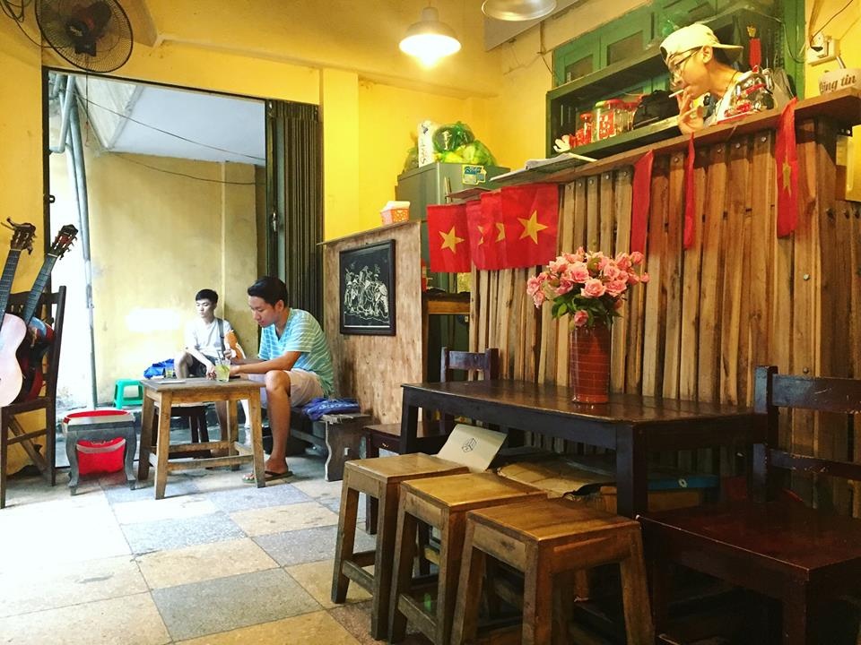 | Căng tin 109 - Tập thể Bộ Công An: Quán là một căn nhà cấp bốn màu vàng bình dị nằm ở cuối ngõ. Không gian quán không được trang trí cầu kỳ mà vỏn vẹn vài bộ bàn ghế và những chiếc đàn ghita, sách cũ, vẫn thu hút nhiều du khách tìm đến bởi cảm giác yên bình, gần gũi mà quán đem lại. Ảnh: facebook quán. |