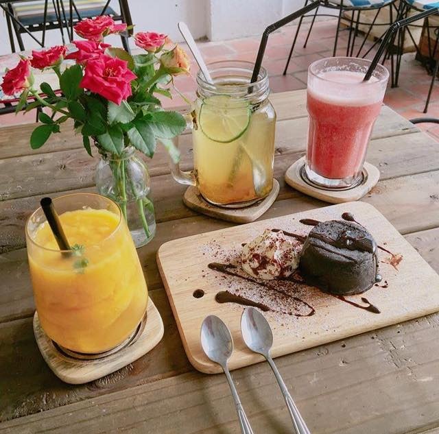 Menu có nhiều loại đồ uống và tráng miệng. Nếu bạn đến quán Cup of Tea Cafe & Bitro thì nên ăn thử bánh lava cake một lần. Bánh mang lên còn ấm nóng, vỏ mềm xắn miếng bánh chocolate chảy ra từ từ rất hấp dẫn. Bánh ăn không ngọt quá, vẫn giữ đc vị đắng của chocolate. Ảnh: Facebook quán.