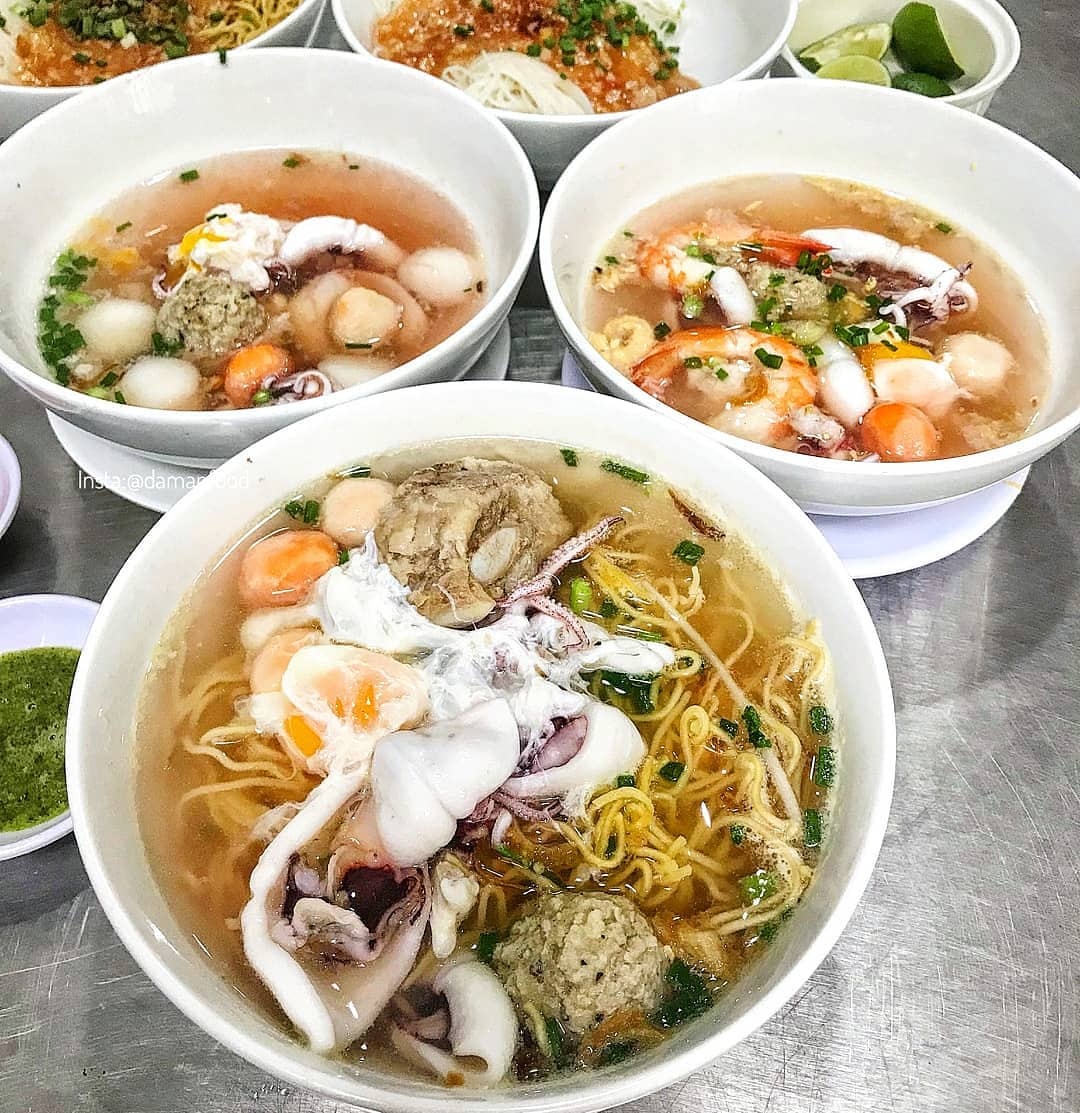 Hủ tiếu mực Tôn Thất Thiệp: Quán được xem là địa chỉ thưởng thức hủ tiếu mực ngon nhất nhì ở TP.HCM. Hủ tiếu ở đây ghi điểm thực khách bởi sườn được ninh mềm, mực và tôm đều ngọt và tươi. Nước lèo là sốt thịt bằm, có trứng được đánh vào quyện hòa béo ngậy. Bạn có thể thêm sa tế và tương ớt để món ăn thêm tròn vị. Ảnh: Nhật Huy Lê, damanfood. |